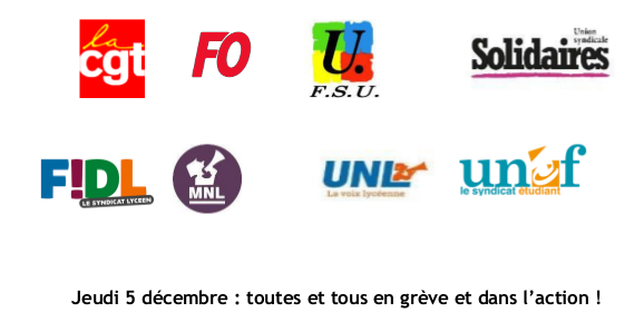 Vous trouverez ci-dessous en PDF les deux préavis de grève : Préavis de grève UFSE-CGT pour le 5 décembre Préavis de grève UFSE-CGT couvrant la période […]