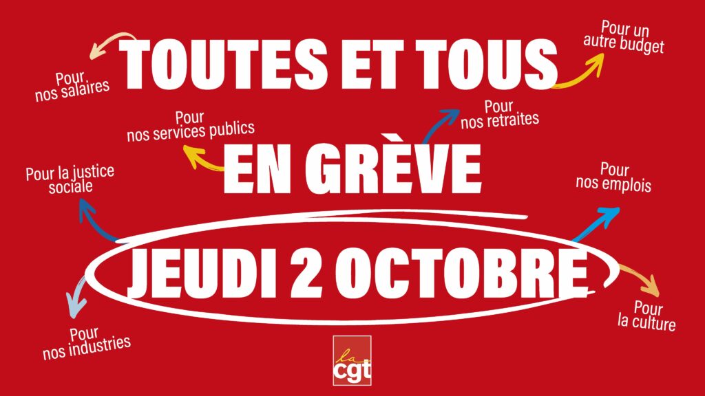 Le monde du travail a assez souffert et c’est pourquoi l’ensemble des organisations syndicales appelle à amplifier la mobilisation lors d’une nouvelle journée d’action et de grève interprofessionnelle le jeudi 2 octobre prochain pour exiger :