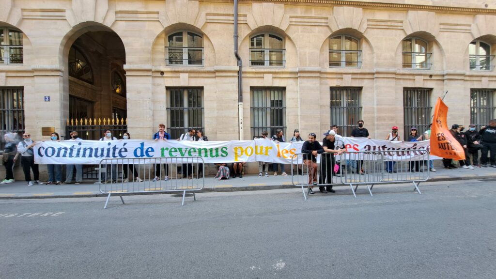 Le matin, une centaine de travailleurs et travailleuses précaires se sont rendu.e.s devant le ministère pour faire entendre leurs revendications, avant de rejoindre le cortège parisien.