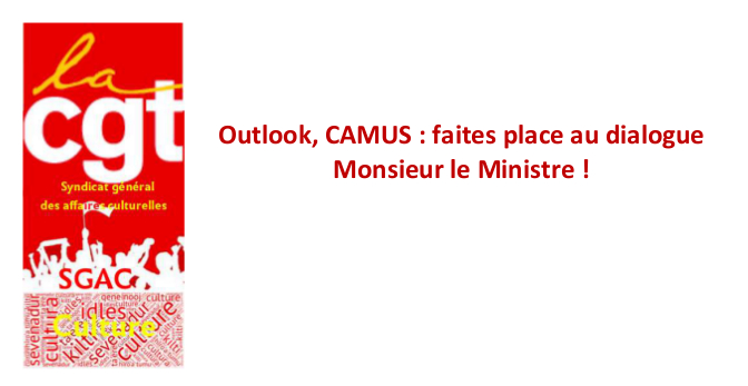 Nous vous rappelons que les procédures de dialogue social n’ont jamais été respectées dans le projet de migration vers Outlook, dont nous savons qu’elle ne se passe pas sans incidence, avec de nombreuses pertes de données et des (dés)organisations de formations en catimini et dans l’urgence. Il est en de même pour l’envoi du questionnaire en ligne aux agents de l’administration centrale sur le projet immobilier CAMUS et les travaux au quadrilatère des Archives nationales démarrés début décembre.